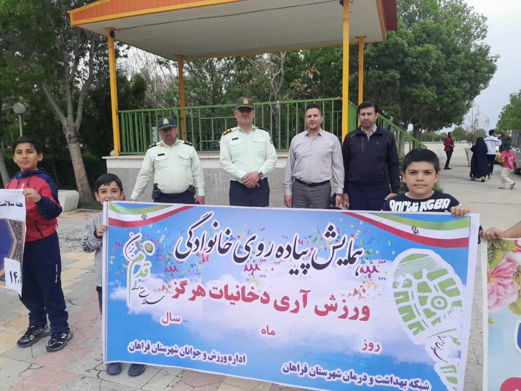 جلالی در گفتگو با خبرنگار «فراهان خبر» با اشاره به برنامه‌های هئیت ورزش‌‌های همگانی شهرستان فراهان به مناسبت دهه مبارک کرامت و ولادت حضرت فاطمه معصومه (س)، گفت: همزمان با آغاز دهه کرامت و هفته سلامت با همکاری اداره ورزش و جوانان و شبکه بهداشت و درمان فراهان، همایش‌ پیاده‌روی خانوادگی از پارک کودک شهرک شهید بهشتی شهر فرمهین به سمت پارک کوثر برگزار شد.
