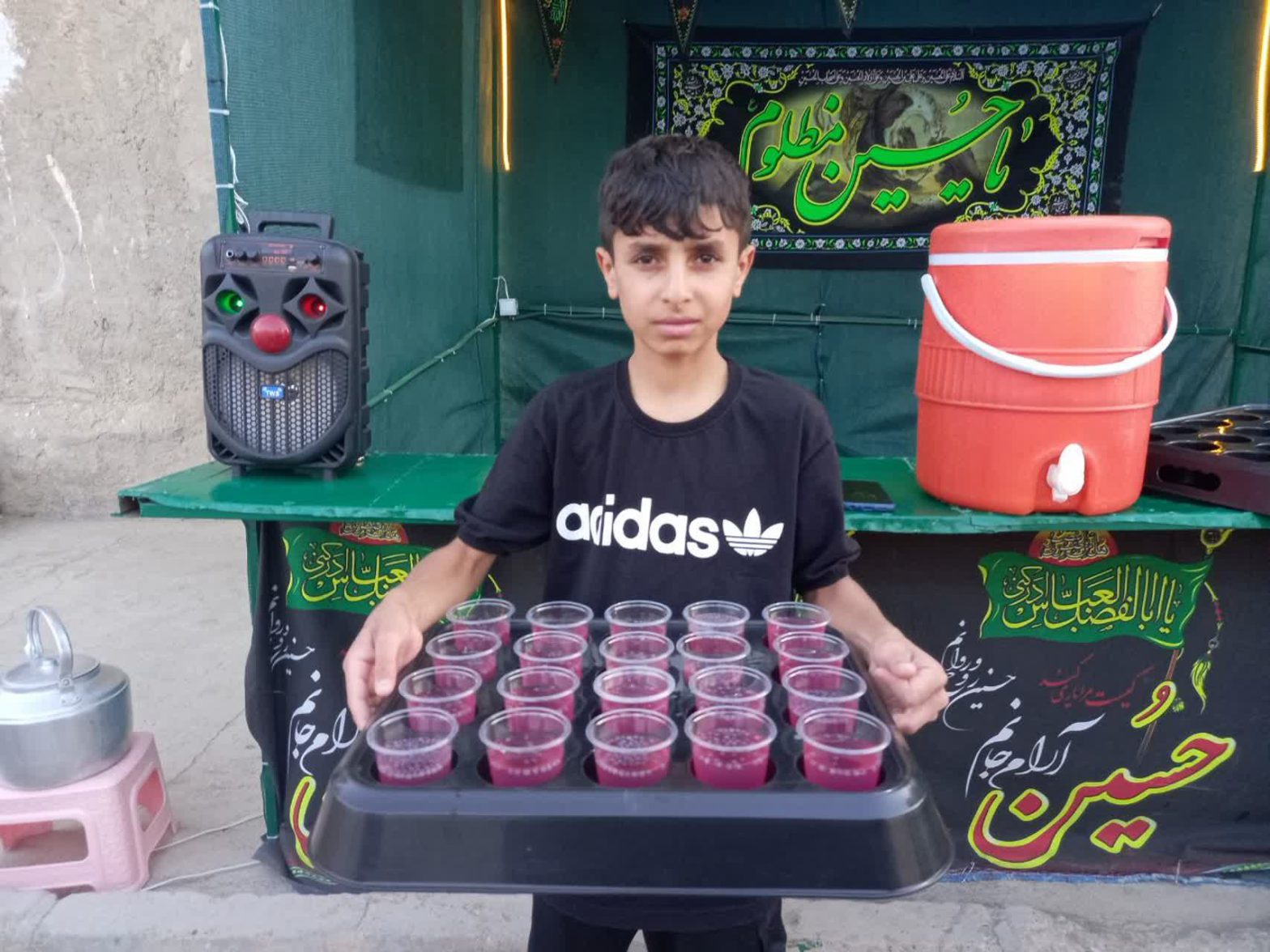 نوجوانان دهه هشتادی با چوب‌، نی و پارچه‌های سیاه، ایستگاهی برپا کرده‌اند. سقفشان تنها یک چادر کهنه است، اما زیر آن، دنیایی از ایمان می‌جوشد. پارچه‌نوشته «نذر علی‌اصغر(ع)» بر پیشانی هر ایستگاه، حکایت از دل‌هایی بزرگ در قامت‌های کوچک دارد.