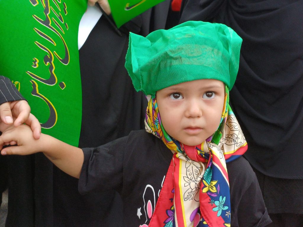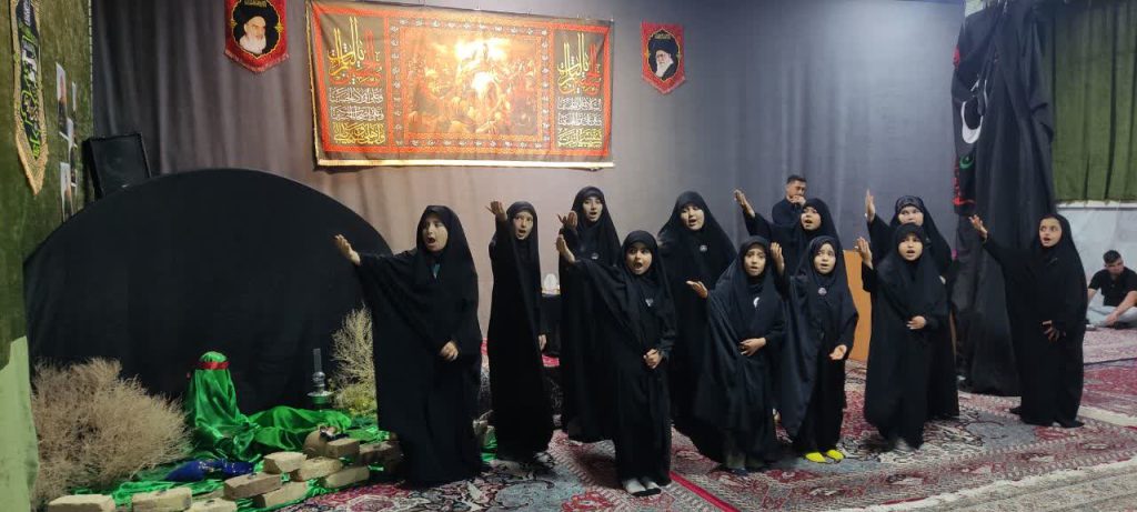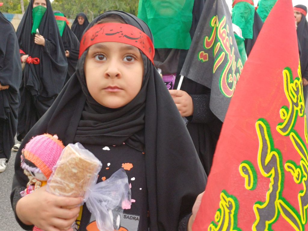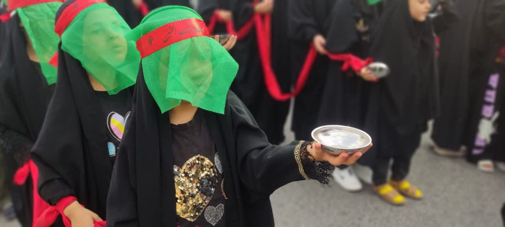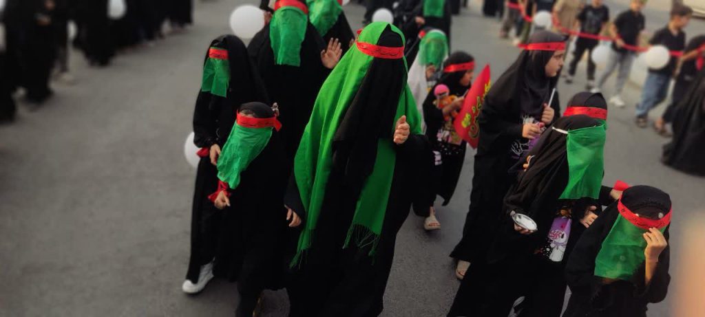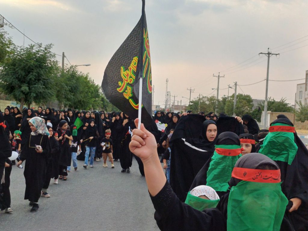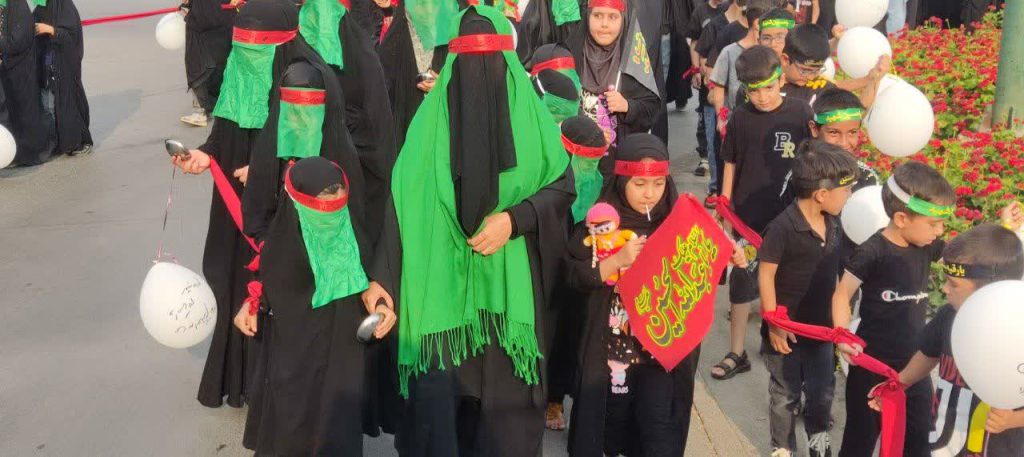 کودکان با پوشش لباسهای مشکی و چادرهای عزا، در حالی که با سربندهای یا حضرت رقیه(س) صفبسته به سوی محل مراسم حرکت کردند و به یاد اسرای کربلا، صحنههایی تأثربرانگیز خلق کردند.