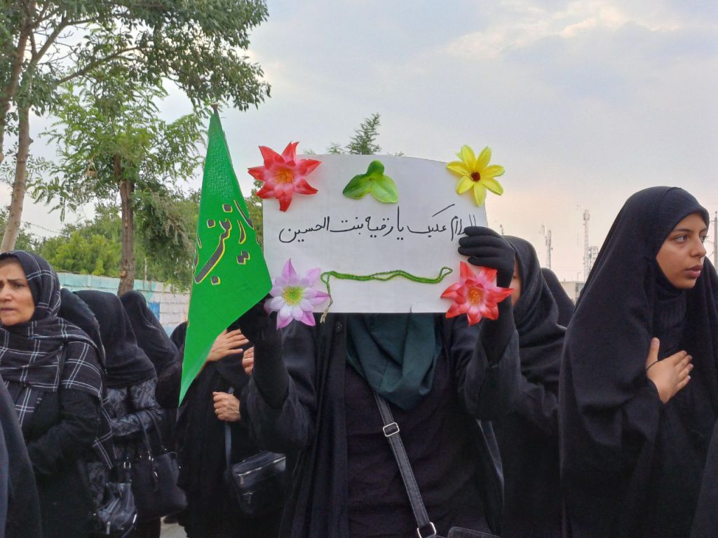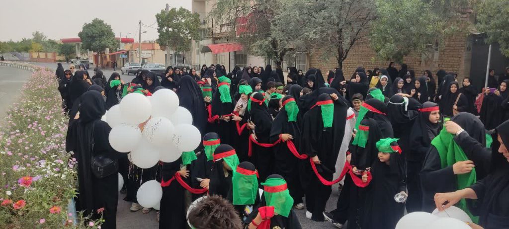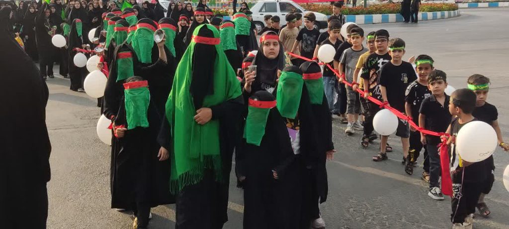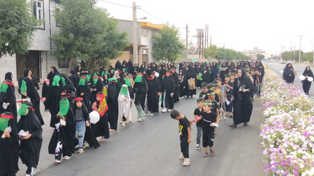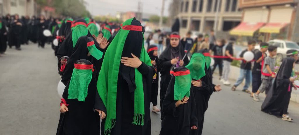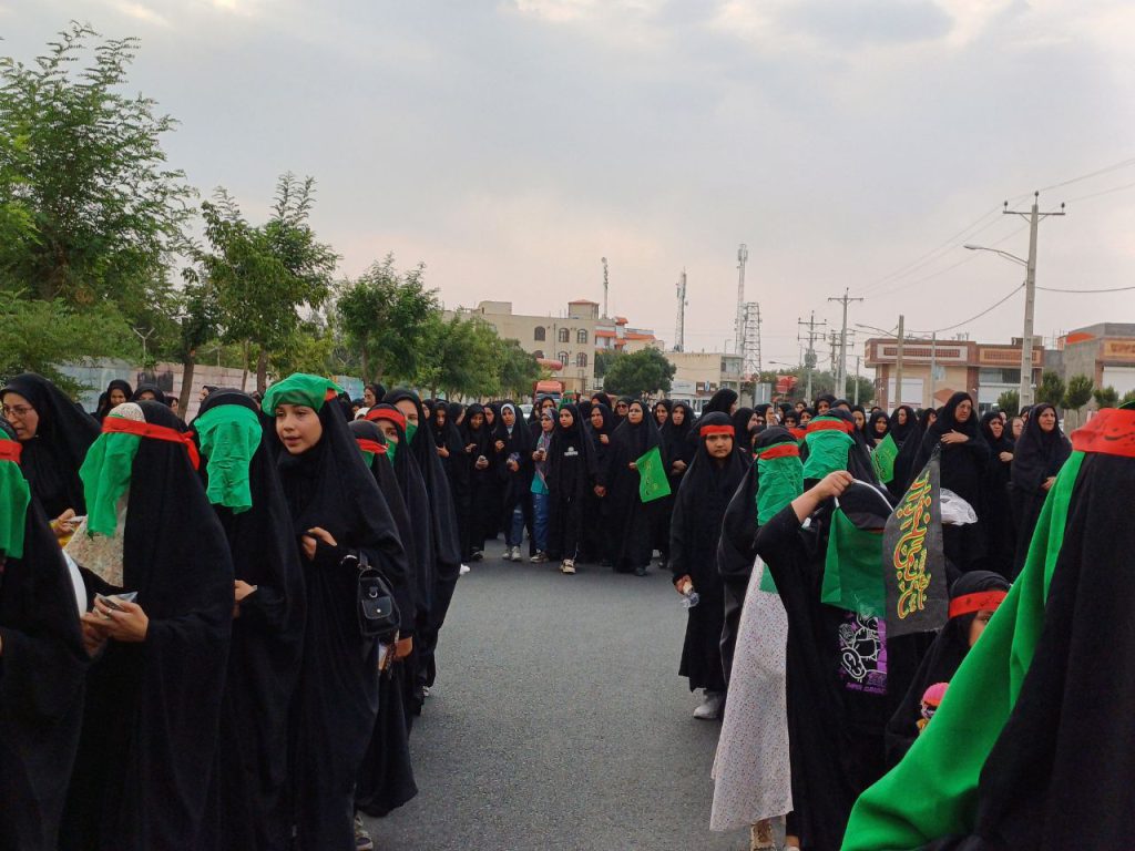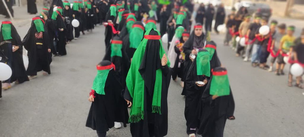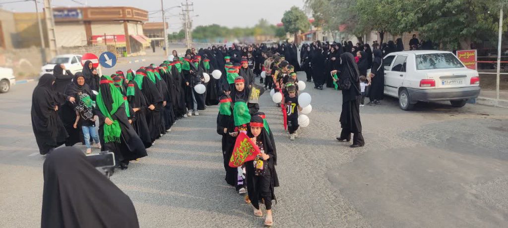 مراسمی که با حضور دهها دختر خردسال در سنین ۳ تا ۷ سال، فضای شهر را عطرآگین از عشق به حضرت رقیه(س) کرد.کودکان با پوشش لباسهای مشکی و چادرهای عزا، در حالی که با سربندهای یا حضرت رقیه(س) صفبسته به سوی محل مراسم حرکت کردند و به یاد اسرای کربلا صحنههایی تأثربرانگیز خلق کردند.