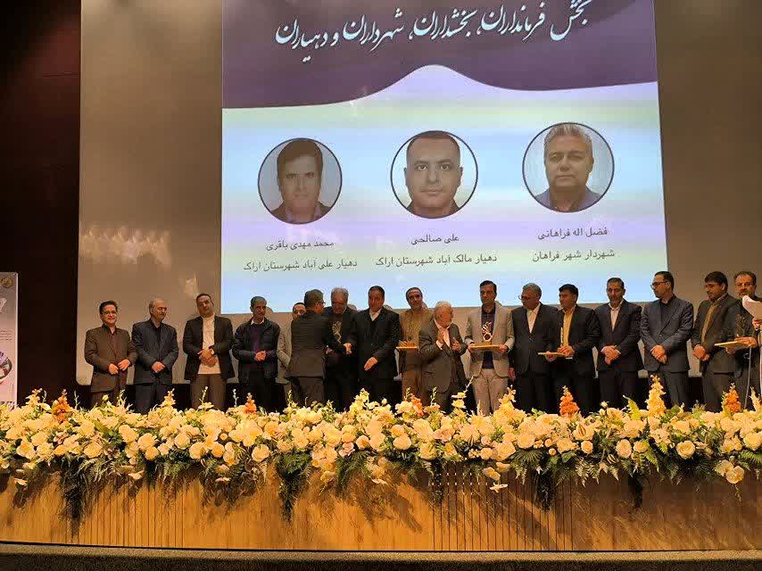 در جریان این مراسم، فضل الله فراهانی شهردار فرمهین و محسن آشناور شهردار خنجین به‌عنوان پژوهشگران برتر در میان شهرداران استان مرکزی معرفی شدند و با اهدای تندیس جشنواره و لوح سپاس مورد تقدیر قرار گرفتند.